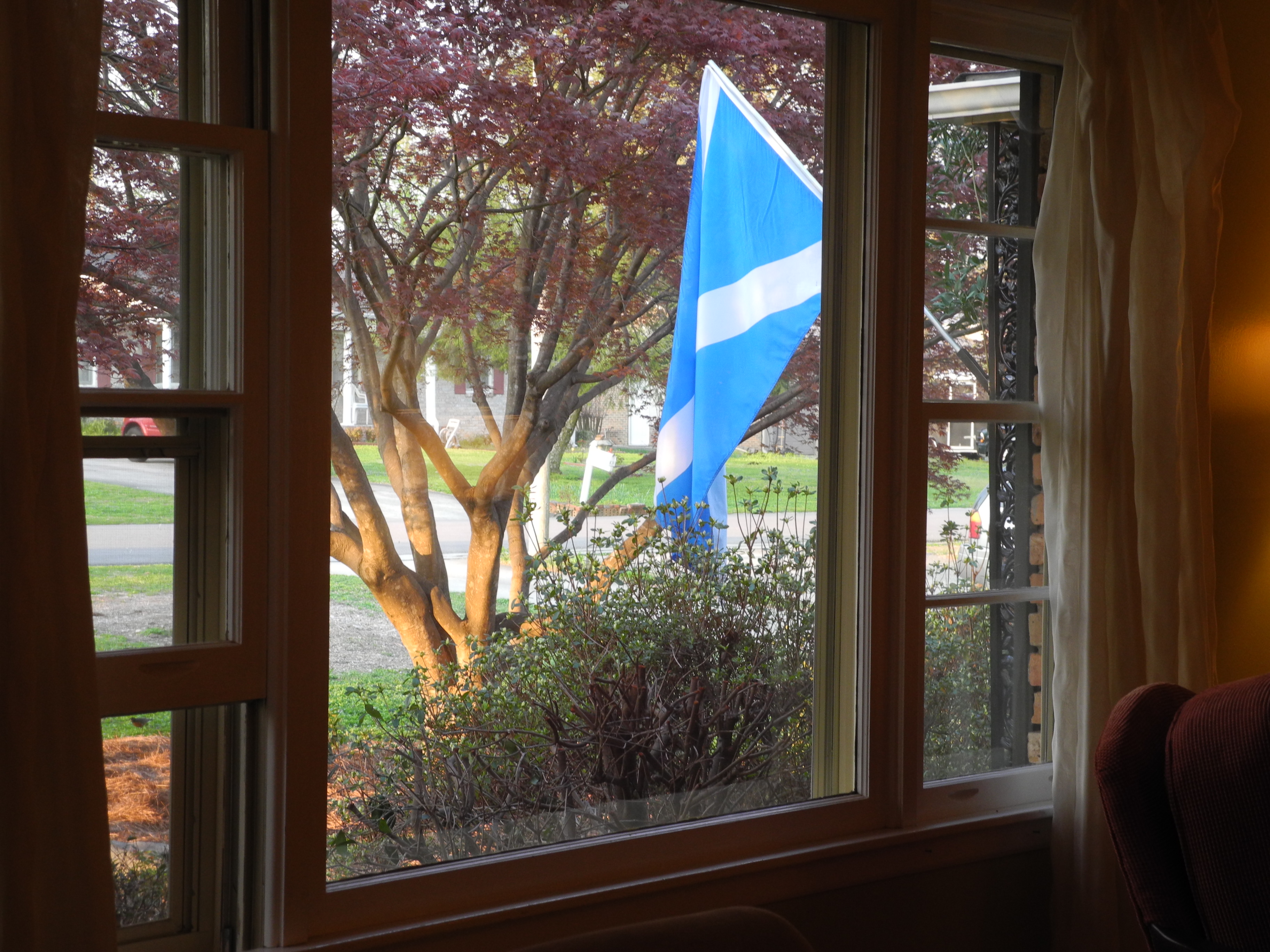 (photo explanation: the Scottish flag flies awaiting the Easter visit of our Covenant College students)