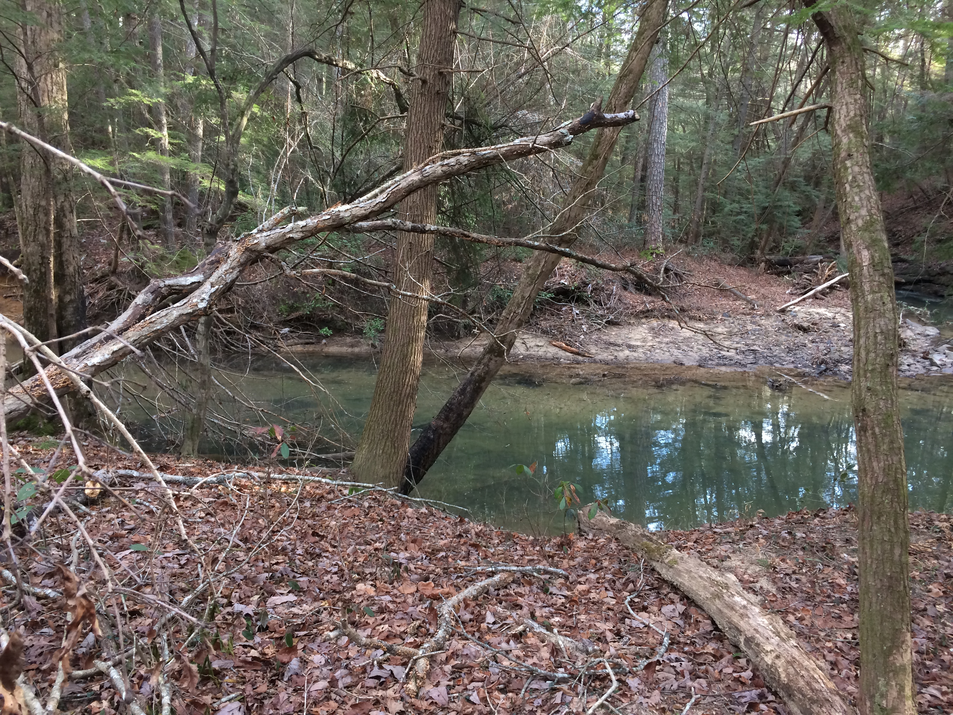 This afternoon we stumbled upon Rivendell beside Rush Creek in Bankhead Forest. It was magical. We couldn’t understand why the Alabama woods were so clear of underbrush that we could stroll through like characters in an Austen novel. Then we remembered the wildfires of last fall.