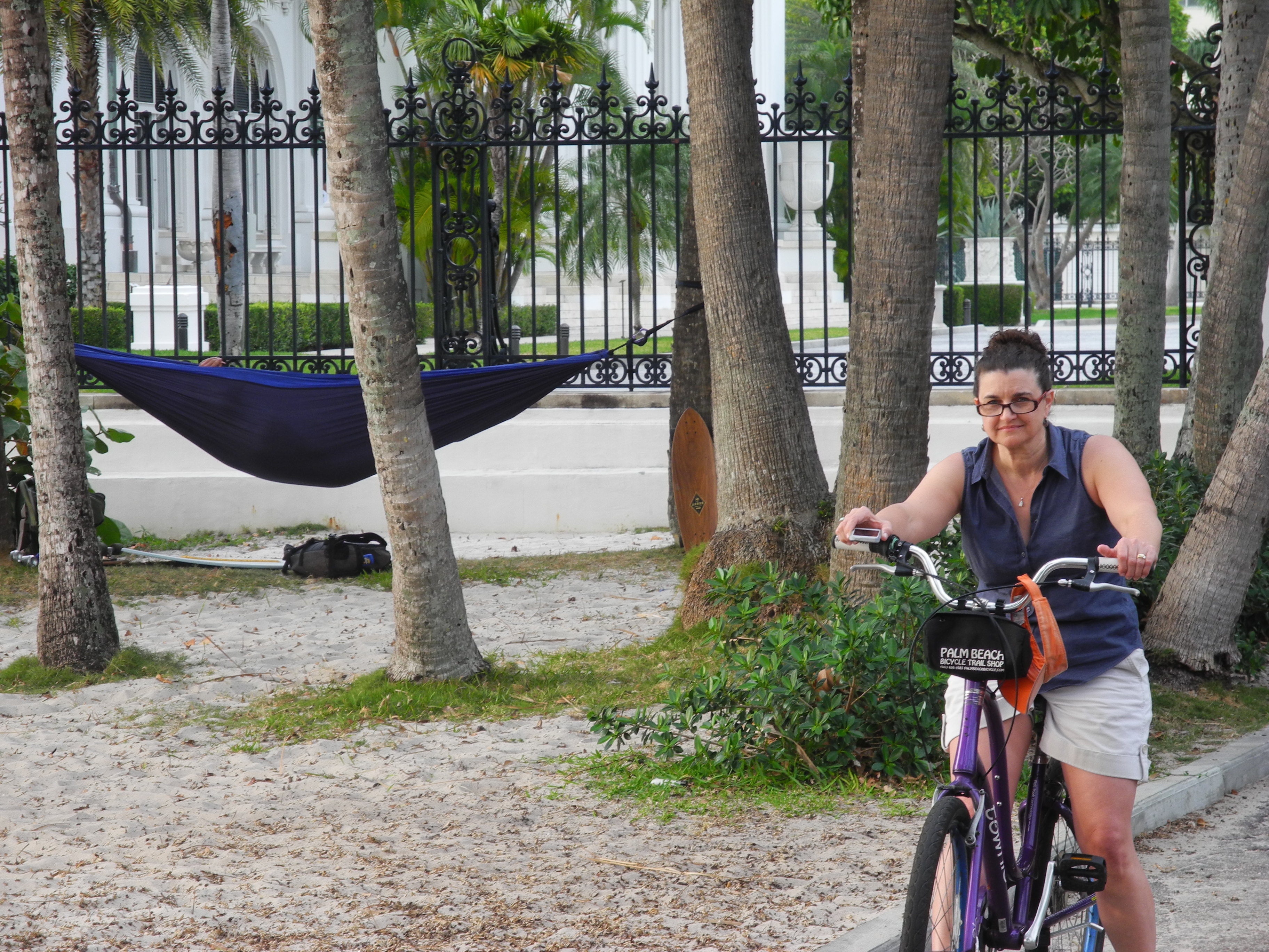 Bikes. On Lake Trail along the Palm Beach intracoastal, nannies in scrubs push scions’ strollers. Yachts and sailboats lie at anchor. Tourists like me twist their necks left and right goggling rare glimpses of one of the super-wealthy doing something otherworldly like gazing at his yard or walking to the pool house.