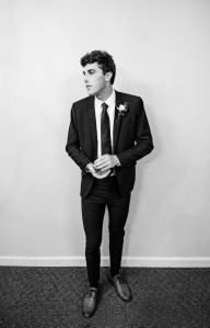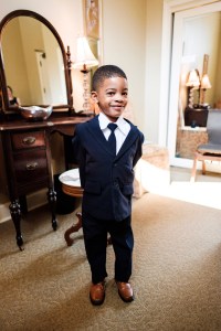 Carter James, the three year old ring-bearer, in a tiny blue suit. Seeing that little man walk head-up and unafraid, downright interested, through a sea of happy faces, made the solemn groom smile big.
