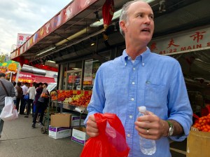A Waze-assisted trip over bridge and dale to Flushing took us to the real Chinatown and the Golden Shopping Mall. This is a food mall, the best of which is in the basement. Steamed lamb and green squash dumplings seemed the summit of taste and texture until we turned to the booth cramped right behind the lamb dumpling booth and ordered cumin lamb pulled noodles. We watched the cook pull the noodles in front of us and pop them into the boiling water. And then we shared a plate of what he ladled up, our heads bumping in leaned-over gluttony. And we were unashamed.