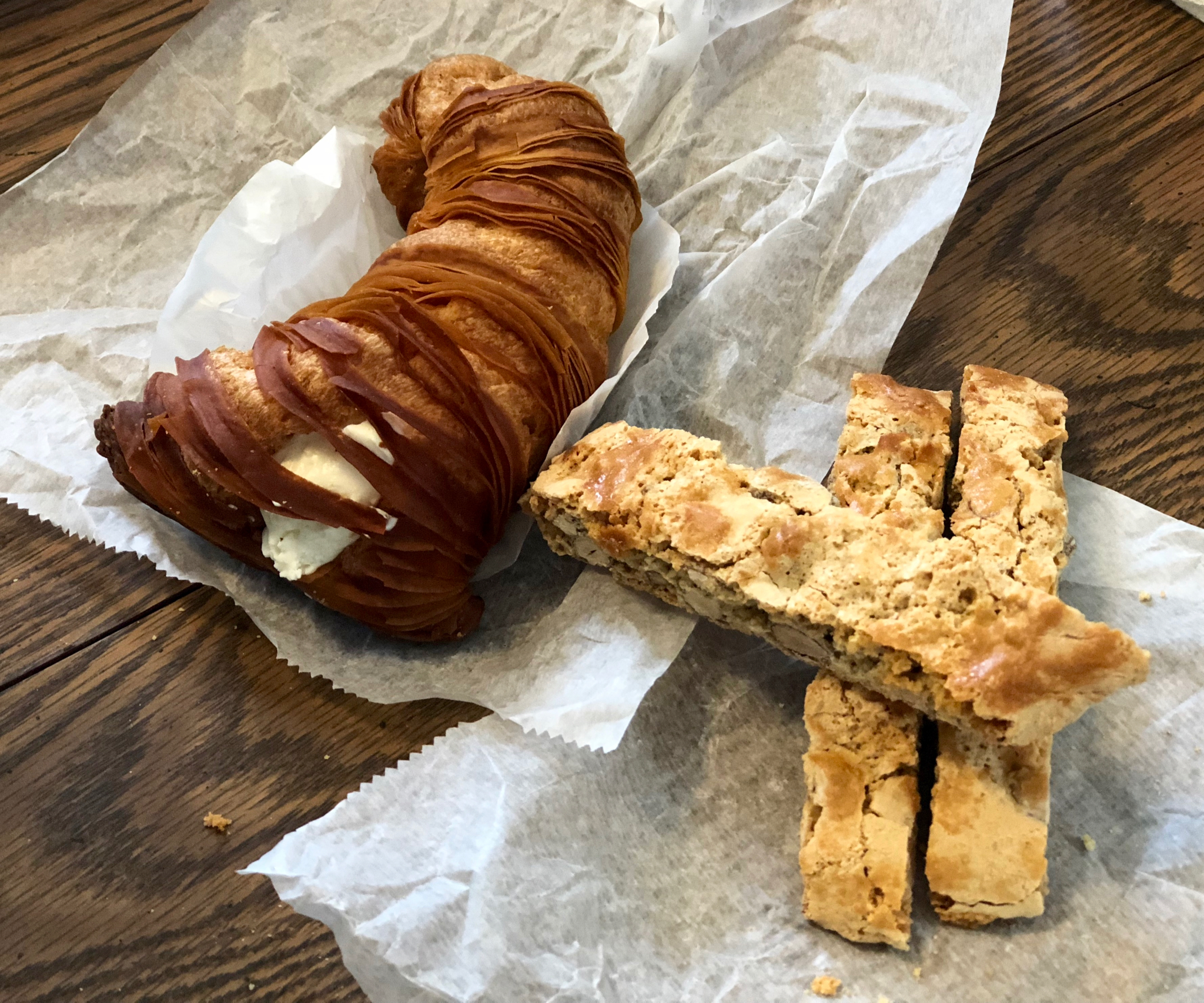 A three mile round-trip run for Gian Piero’s breakfast. You hear someone go on and on about the cream in Italian pastries and think to yourself, “Yeah, yeah.” And then one day, you actually taste it and repent of your lack of respect. This particular pastry is called a Lobster Tail because look at it. And beside it rests almond biscotti that, if that was all I had for the day, would be entirely sufficient. To get biscotti like that requires the right ingredients and the right recipe and the right chef with the right bloodline. None of those four things converge in our little hometown, love it as I do.