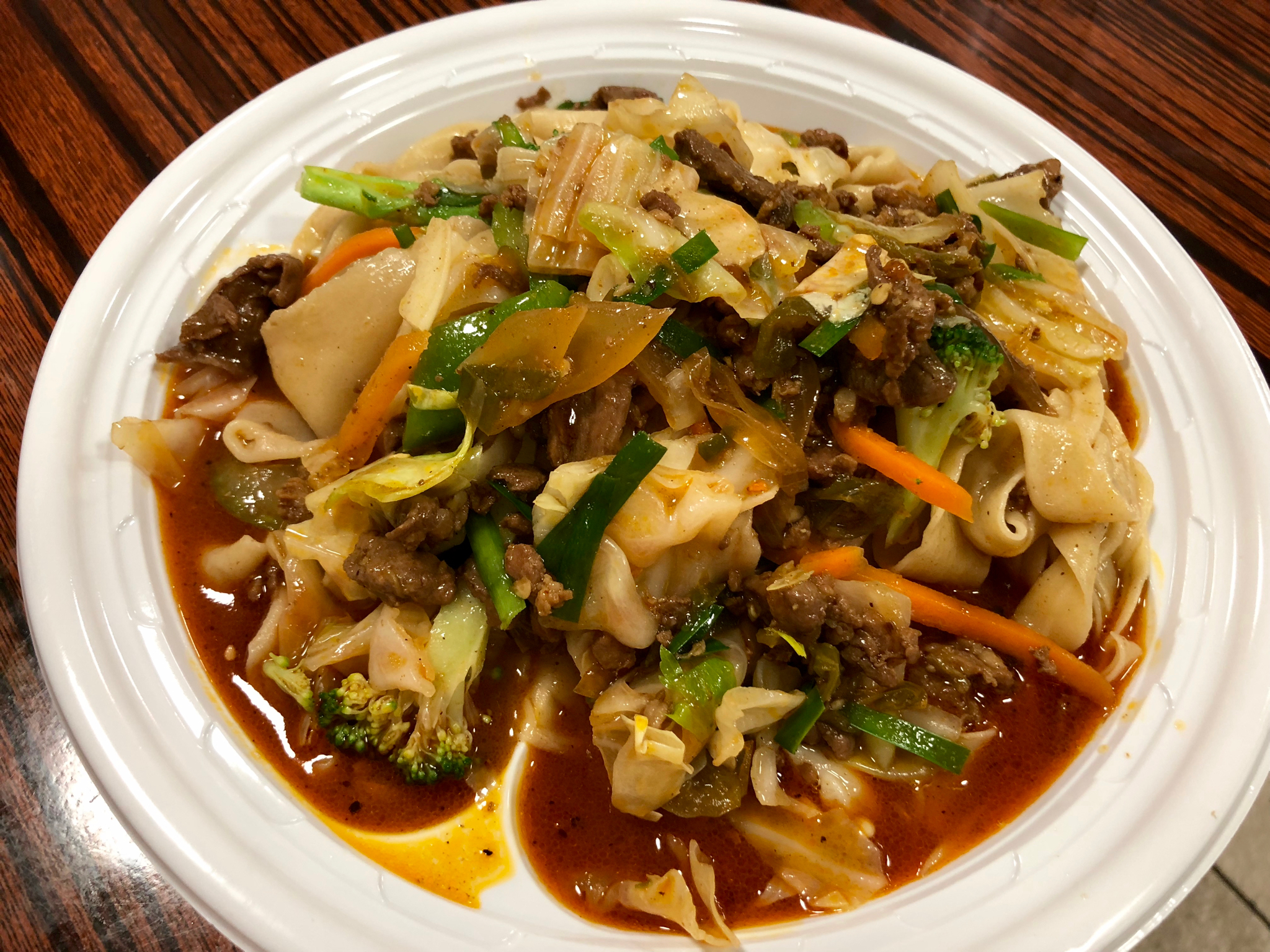 A Waze-assisted trip over bridge and dale to Flushing took us to the real Chinatown and the Golden Shopping Mall. This is a food mall, the best of which is in the basement. Steamed lamb and green squash dumplings seemed the summit of taste and texture until we turned to the booth cramped right behind the lamb dumpling booth and ordered cumin lamb pulled noodles. We watched the cook pull the noodles in front of us and pop them into the boiling water. And then we shared a plate of what he ladled up, our heads bumping in leaned-over gluttony. And we were unashamed.