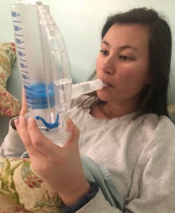 Third: Because God is so good, when He gives the nurse the solemn charge for this particular human for this set season, He also bestows on finite caregivers a special wisdom, a trustworthy intuition, a set of eyes that see this person and what she needs. I have zero medical training, but a voice told me, among many other promptings, that weaning off the spirometer was ok once the patient was upright, mostly out of bed, and moving. I chose to trust the God-given voice rather than Google. And I loved the name ‘Incentive Spirometer’! The ‘incentive’ part seemed to be this ball that was supposed to float halfway in the little chamber if the pneumoniac breathes lustily enough. And I guess the measurement lines were incentive too, to get ever higher and higher. We marked ours with a sharpie and tried to top the mark each day. So yeah, incentive.